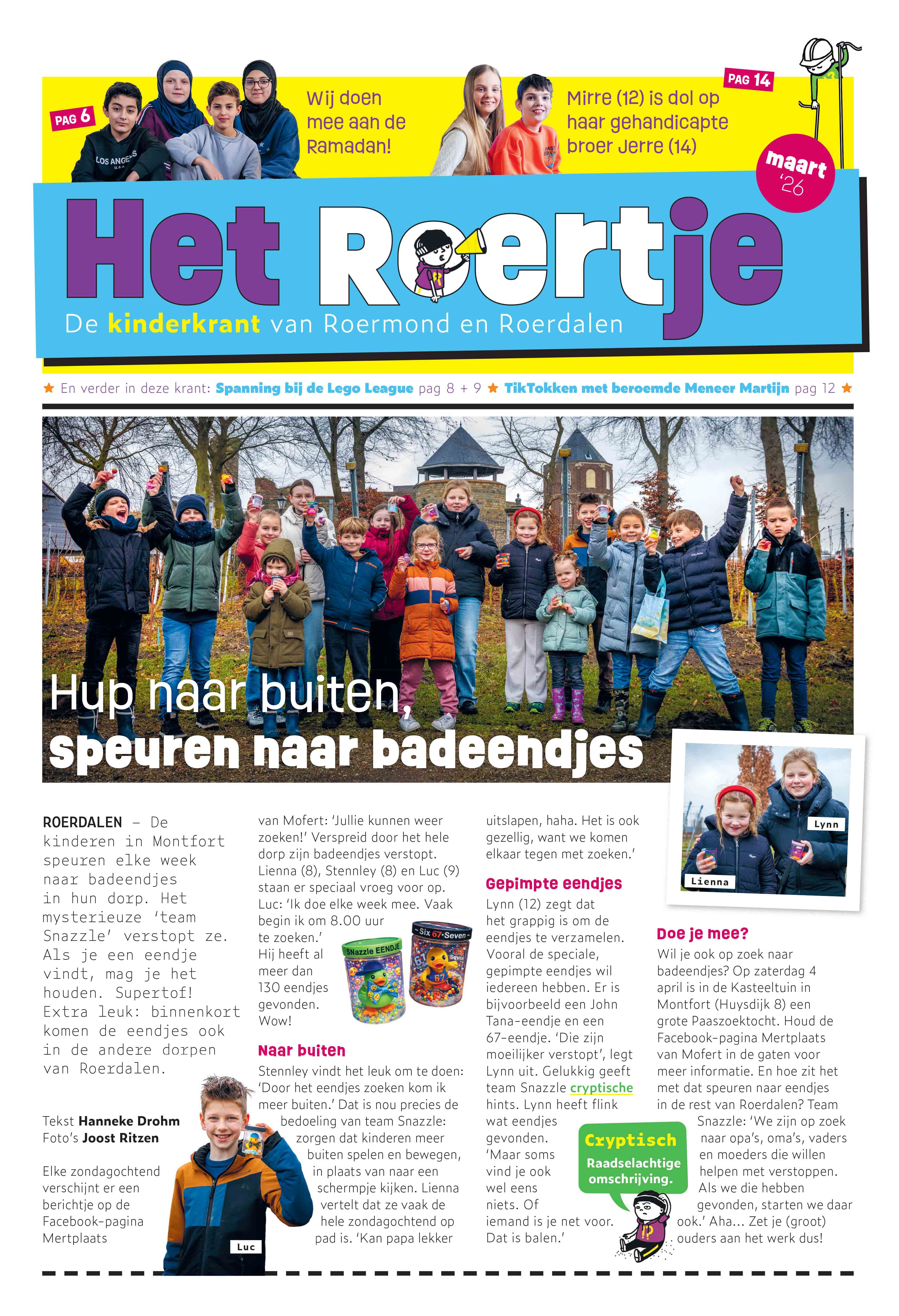 Het Roertje is sinds april 2022 dé lokale kinderkrant voor alle kinderen van 7 tot en met 12 jaar in de gemeenten Roermond en Roerdalen. De papieren uitgave verschijnt ook in 2026 acht keer en wordt verspreid via alle 25 basisscholen, 4 scholen voor speciaal onderwijs en openbare gelegenheden (oplage 4.300).